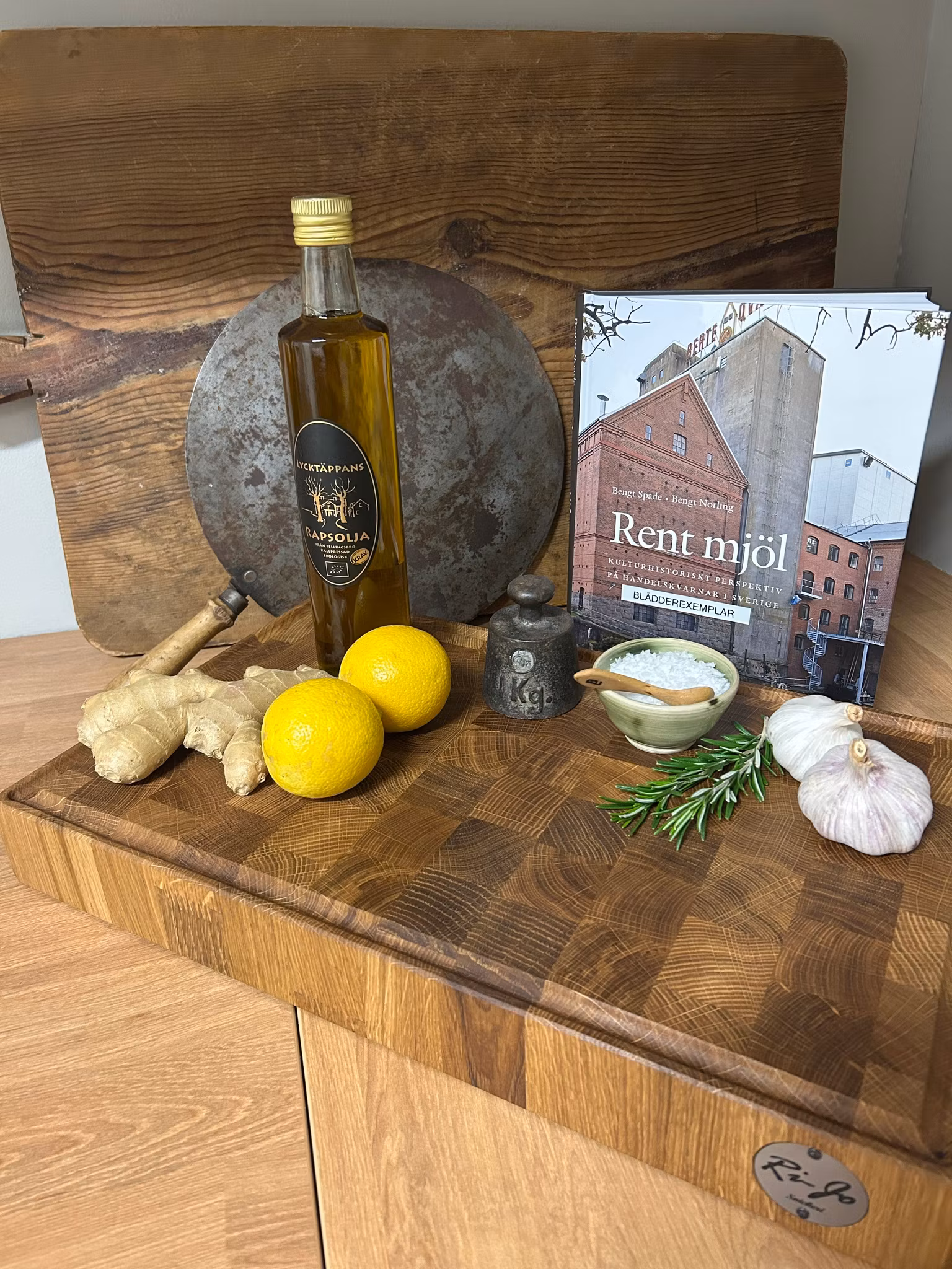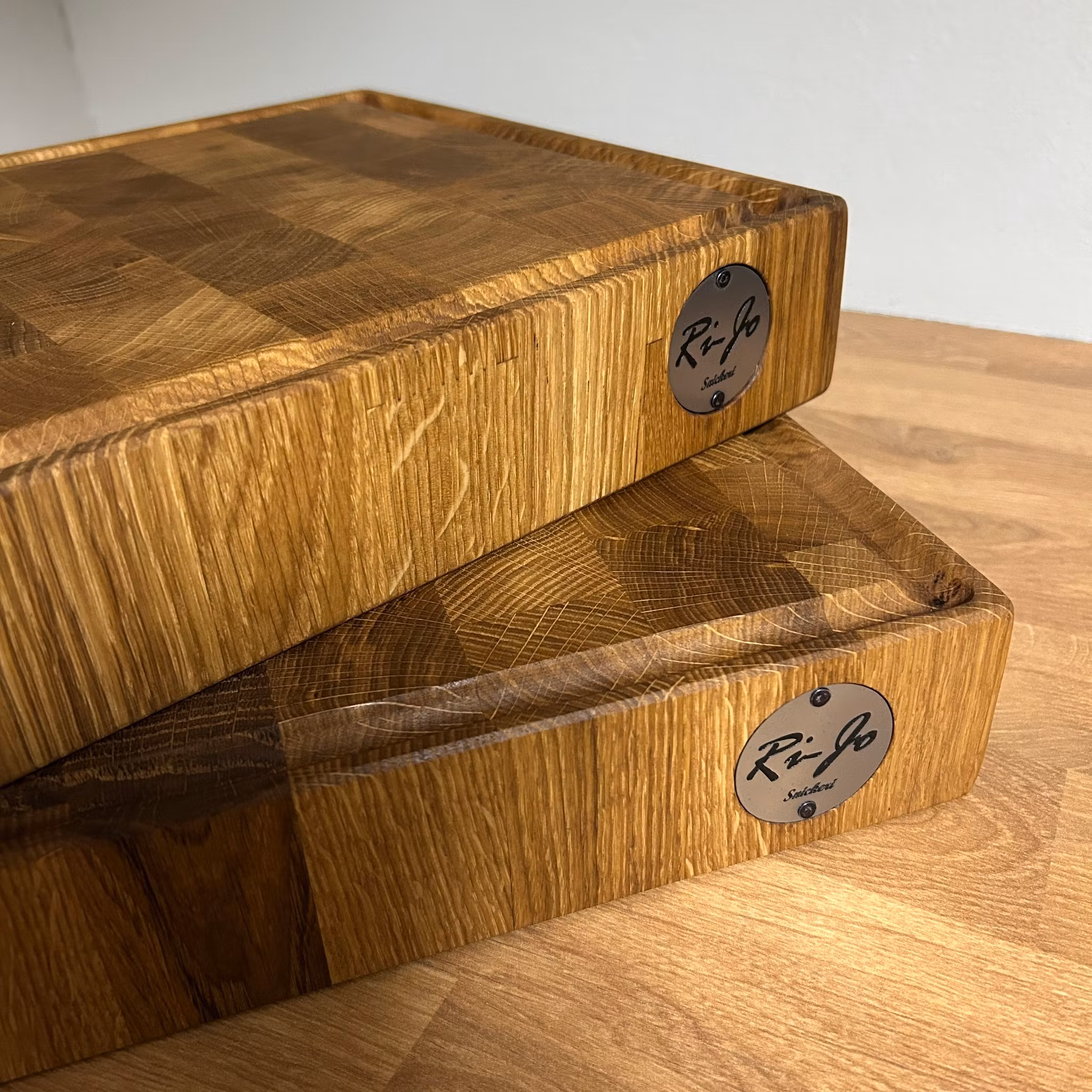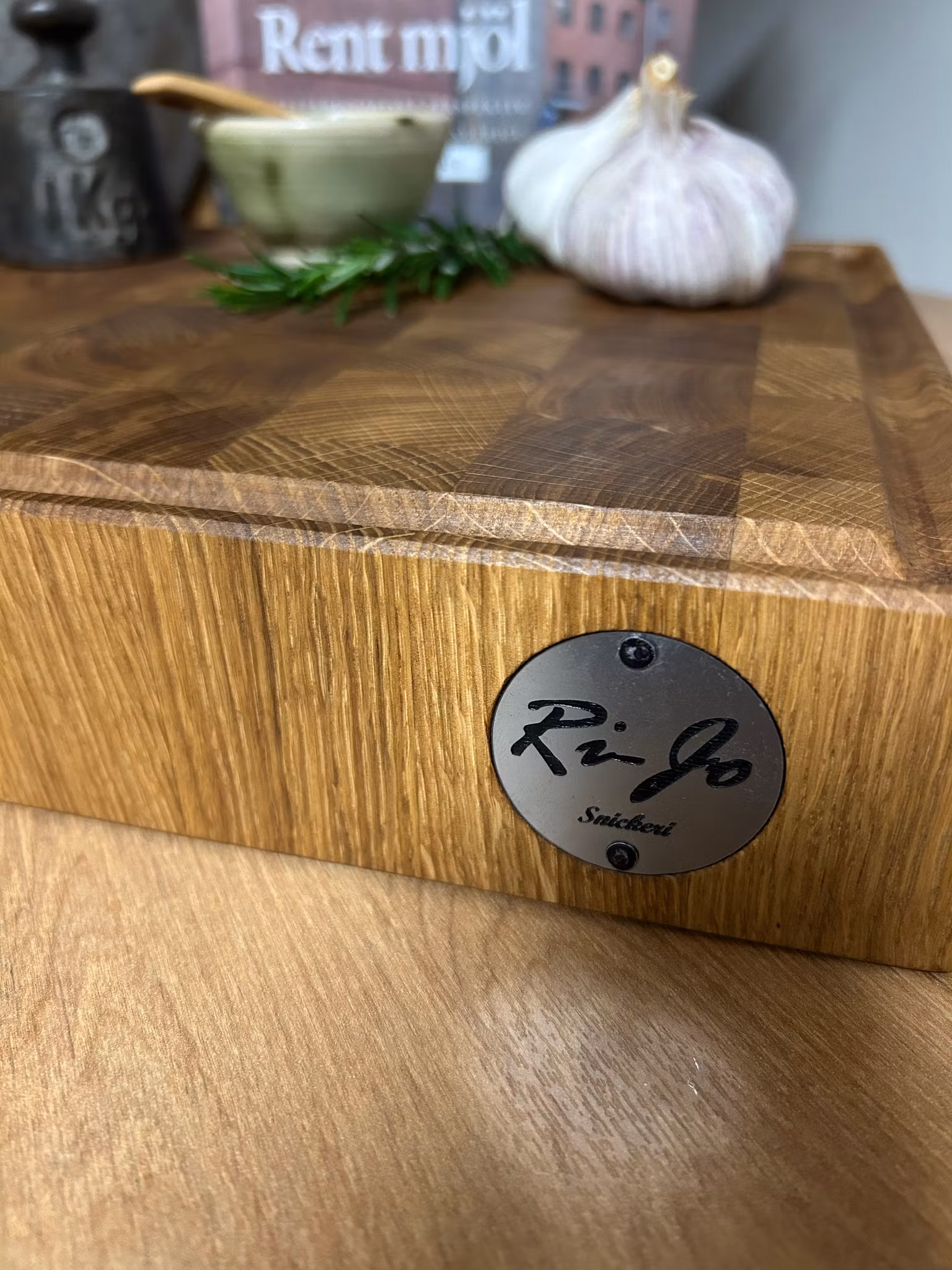 Svensktillverkad skärbräda i ek av ändträ, dvs. träfibrerna är avsågade och står upp. Skärbrädor i ändträ, blir mycket hållbara och har en unik förmåga att läka ihop skärspår. Detta ger en lång livslängd. Tillverkas av RiJo Snickeri. Skötselråd medföljer.